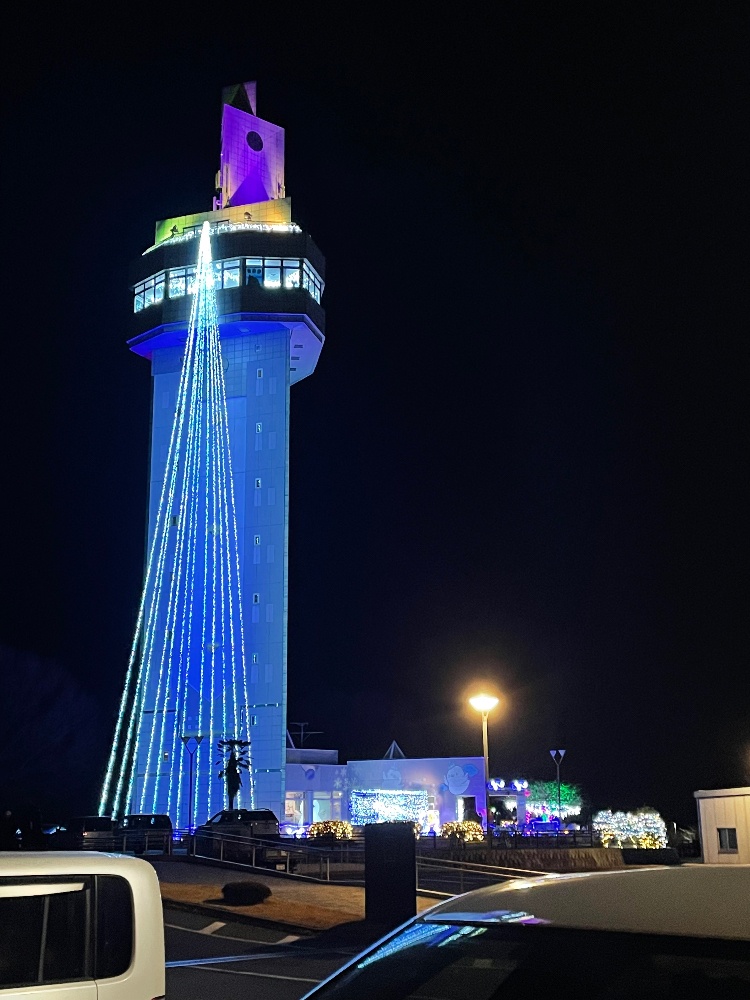 会場外は、タワーがライトアップ✨明日も発表会の終わりに見られるかなぁ😍明日は目いっぱい楽しみます!