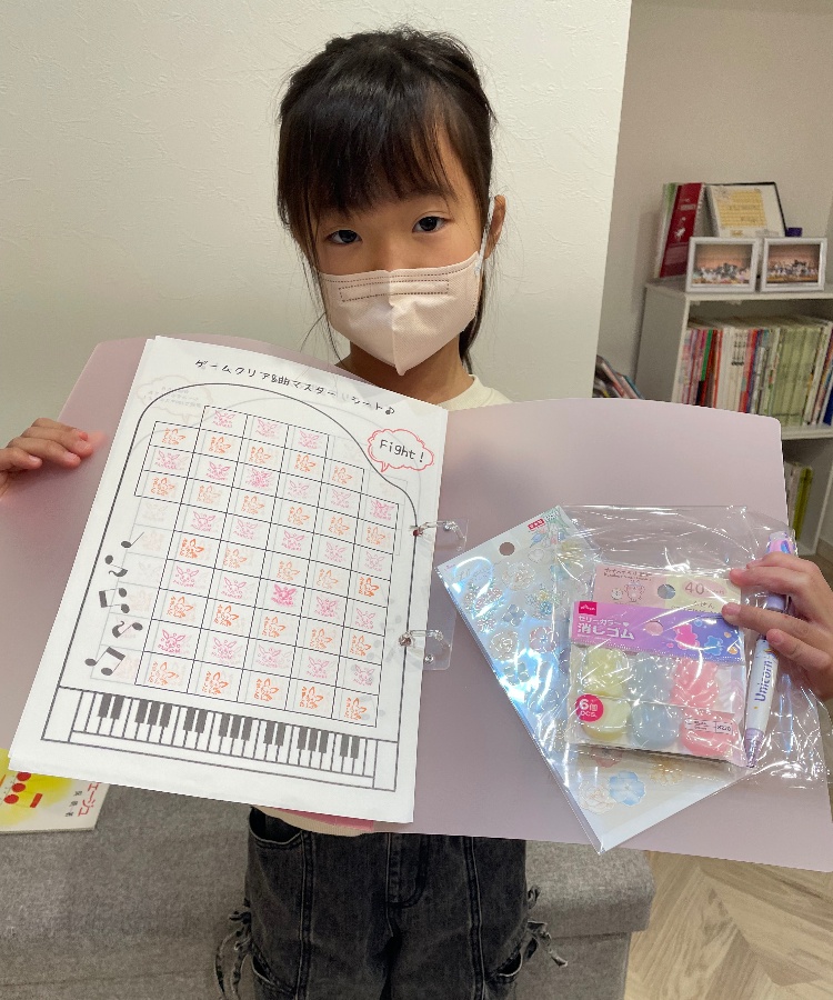 レッスンを始めてから1年で100個たまったね!最短記録更新かも!?後からレッスンを始めたお兄ちゃんもグングン成長してきています!ケンカしながらも!?😂切磋琢磨しながらピアノ学習を深めて欲しいです☺️2枚目のシートも頑張って!